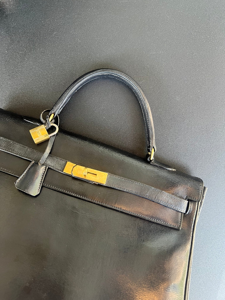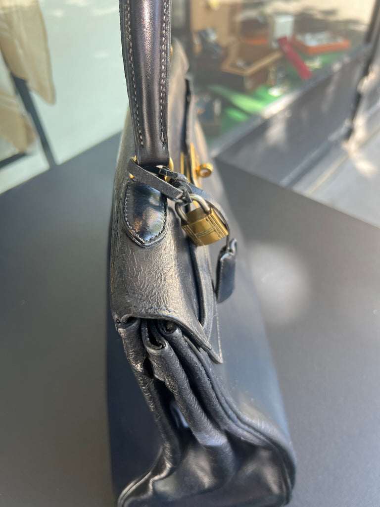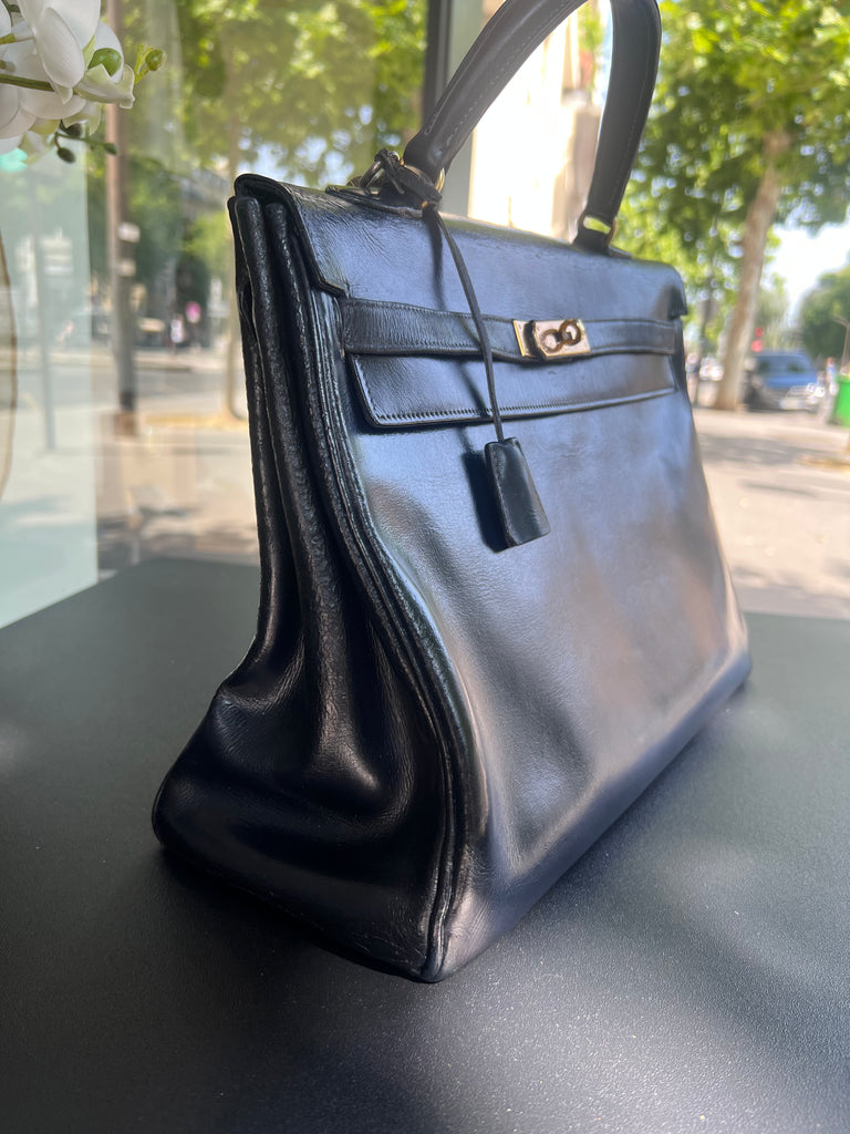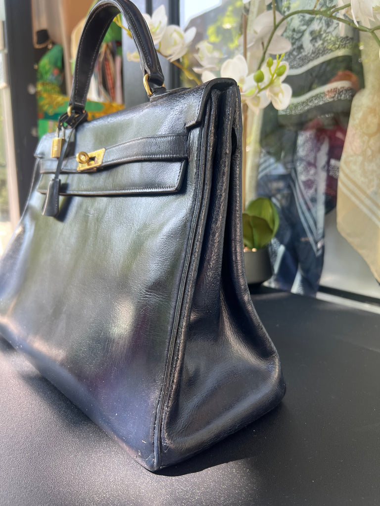 Sac Kelly Hermès vintage marine 35 cm restauré (voir la dernière photo pour voir le « avant »)