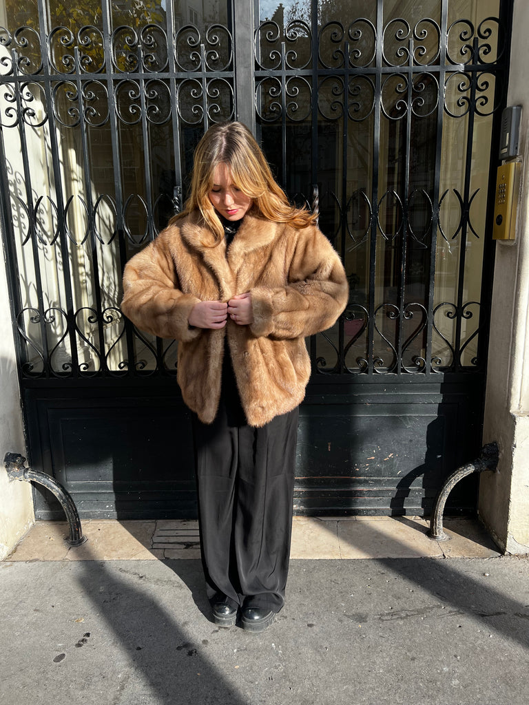 Blouson en fourrure de vison, couleur miel/caramel.